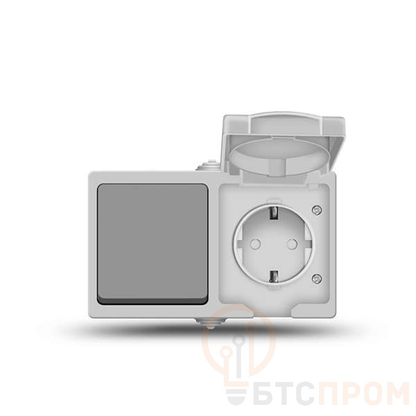 Блок ОП Dita (розетка 16А 250В с заземл. + 1-кл. выкл. 10А) IP54 сер. TOKOV ELECTRIC TKL-DT-V1RZ-C06-IP54