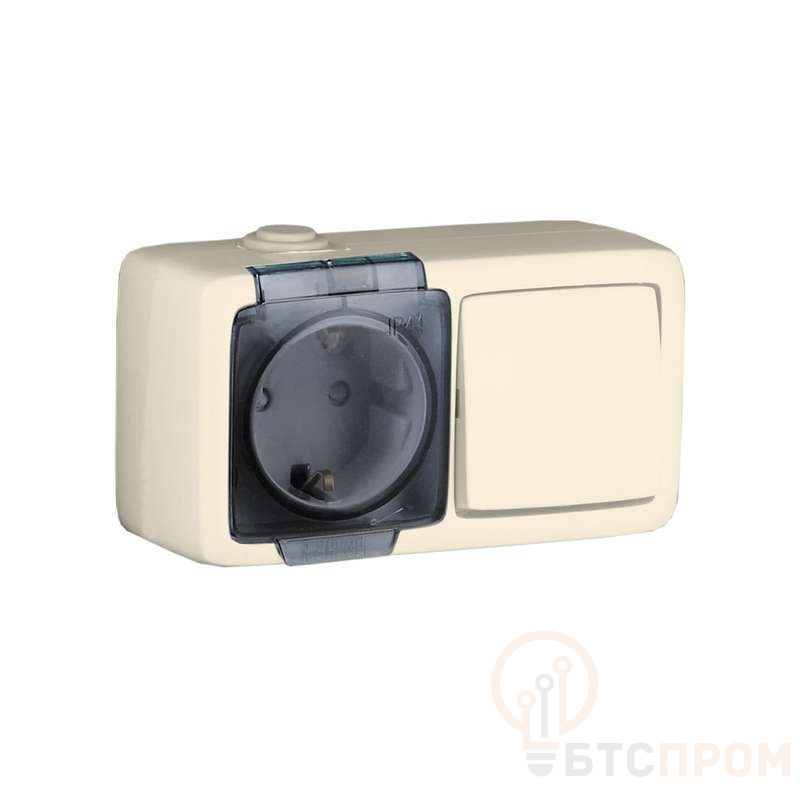 Блок 2-м розетка с защ. шторками с заземл. 16А + выкл. 1-кл. IP44 сл. кость HEGEL БА16-221-01 фото в каталоге от BTSprom.by