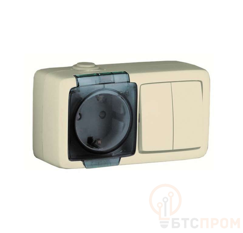 Блок 2-м розетка с защ. шторками с заземл. 16А + выкл. 2-кл. IP44 сл. кость HEGEL БА16-222-01 фото в каталоге от BTSprom.by