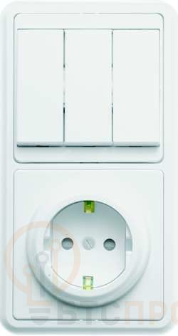 Блок БКВР-036 Бэлла (3-кл. выкл. + евророзетка с защ. шторками) бел. Кунцево 5847