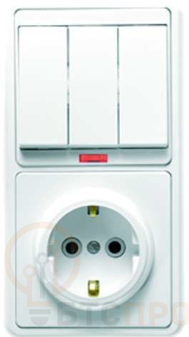 –Блок БКВР-054 Бэлла (3-кл. выкл. с подсветкой + розетка с заземл.) бел. Кунцево 5845