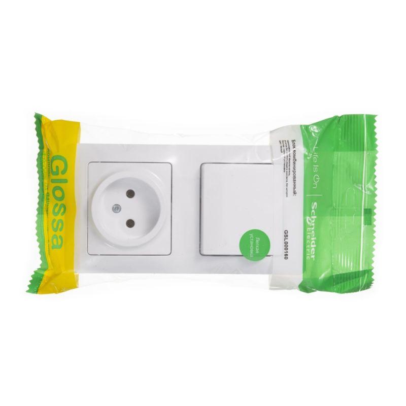 Блок комбинированный Systeme Electric (ранее Schneider Electric) серии Glossa (в сборе, цвет белый) предназначен для сетей до 250 В, состоит из розетки на 16 А и 1-клавишного выключателя на 10 А. - Блок удобен в применении и отлично подходит для коридора. - Выполнен из материала PС+ASA, стойкого к УФ-излучению и появлению царапин.