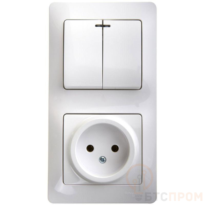 Блок комбинированный Systeme Electric (ранее Schneider Electric) серии Glossa (в сборе, цвет белый) предназначен для сетей до 250 В, состоит из розетки на 16 А и 2-клавишного выключателя с подсветкой на 10 А. - Благодаря современной светодиодной подсветке зеленого цвета изделие легко найти в темноте. - Блок удобен в применении и отлично подходит для коридора. - Двухклавишный выключатель позволяет управлять двумя источниками света из одной точки. - Выполнен из материала PС+ASA, стойкого к УФ-излучению и появлению царапин.