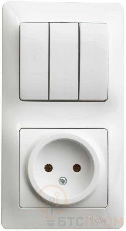 Блок комбинированный Systeme Electric (ранее Schneider Electric) серии Glossa (в сборе, цвет белый) предназначен для сетей до 250 В, состоит из розетки на 16 А и 3-клавишного выключателя на 10 А. - Блок удобен в применении и отлично подходит для коридора. - Трёхклавишный выключатель позволяет управлять тремя источниками света из одной точки. - Выполнен из материала PС+ASA, стойкого к УФ-излучению и появлению царапин.