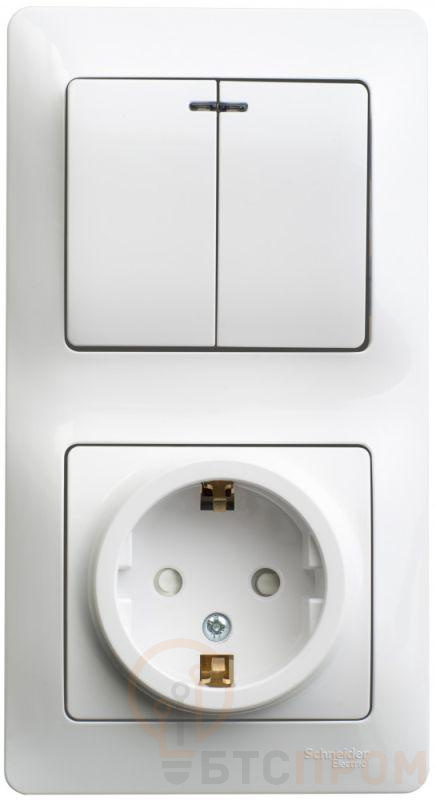 Блок комбинированный Glossa (розетка с заземл. защ. шторки + 2-кл. выкл. с подсветкой) бел. SE GSL000175