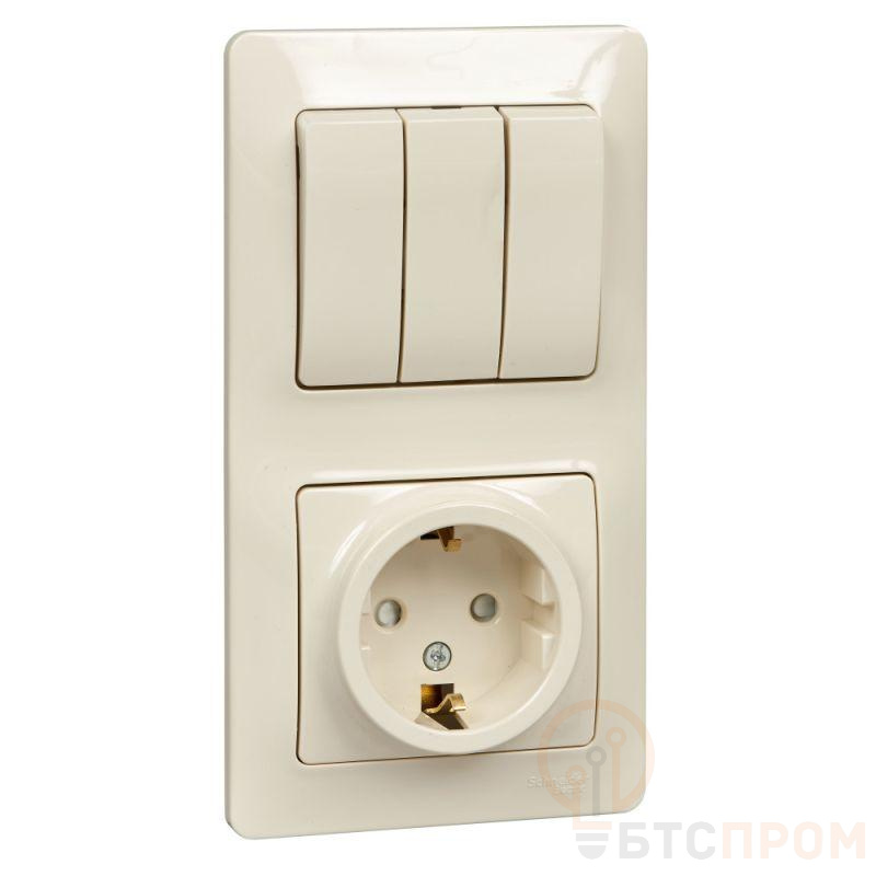 Блок комбинированный Systeme Electric (ранее Schneider Electric) серии Glossa (в сборе, цвет бежевый) предназначен для сетей до 250 В, состоит из розетки с заземлением и шторками на 16 А и 3-клавишного выключателя на 10 А. - Блок удобен в применении и отлично подходит для коридора. - Заземляющий контакт обеспечивает дополнительную защиту от удара электрическим током. При наличии заземления электрический потенциал уходит в землю, защищая человека. - Трёхклавишный выключатель позволяет управлять тремя источниками света из одной точки. - Выполнен из материала PС+ASA, стойкого к УФ-излучению и появлению царапин.