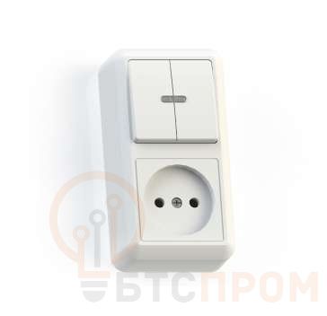 Блок комбинированный ОП БКВР-431 Оптима (2-кл. выкл. с подсветкой + розетка) бел. Кунцево 8063 фото в каталоге от BTSprom.by