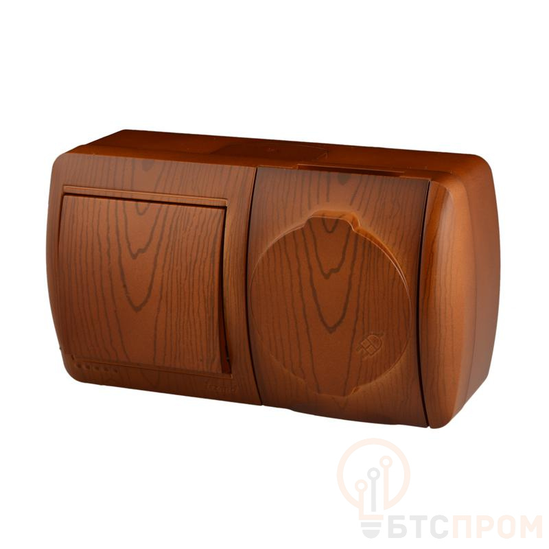 Блок Nata (розетка с заземл. с защ. крышкой + 1-кл. выкл.) сосна LEZARD 710-0800-170 фото в каталоге от BTSprom.by