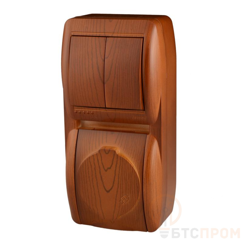 Блок Nata (розетка с заземл. с защ. крышкой + 2-кл. выкл.) вертикал. сосна LEZARD 710-0800-173 фото в каталоге от BTSprom.by