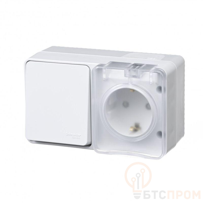 Блок ОП AtlasDesign PROFI IP54 (розетка 1-м 16А заземл. защ. шторки + 1-кл. выключатель 10А) бел. SE ATN540170