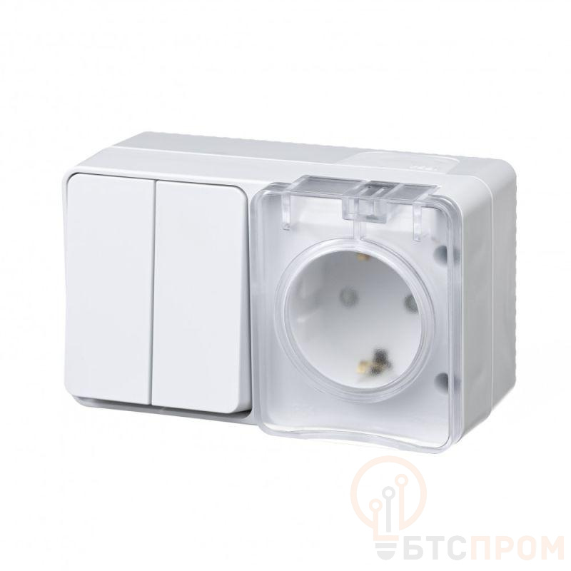 Блок ОП AtlasDesign PROFI IP54 (розетка 1-м 16А заземл. защ. шторки + 2-кл. выключатель 10А) бел. SE ATN540174