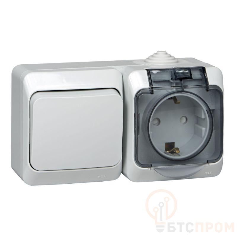 Блок Systeme Electric (ранее Schneider Electric) ЭТЮД (серый, открытой установки) предназначен для применения в сетях до 250В, состоит из розетки на 16А, со шторками, без заземления и одноклавишного переключателя на 10А. Переключатель позволяет управлять одним источником света из двух точек. Он удобен в применении и отлично подходит для ванной комнаты (IP44). Сделано в России.