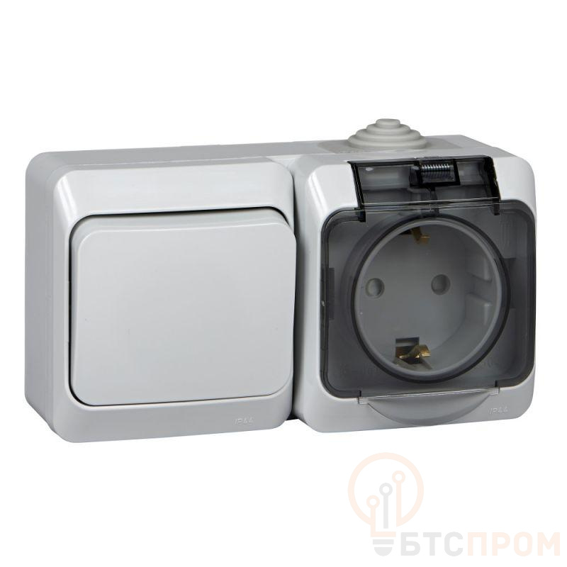 Блок Systeme Electric (ранее Schneider Electric) ЭТЮД (серый, открытой установки) предназначен для применения в сетях до 250В, состоит из розетки на 16А со шторками и без заземления и одноклавишного выключателя на 10А. Удобен в применении и отлично подходит для ванной комнаты (IP44). Сделано в России.