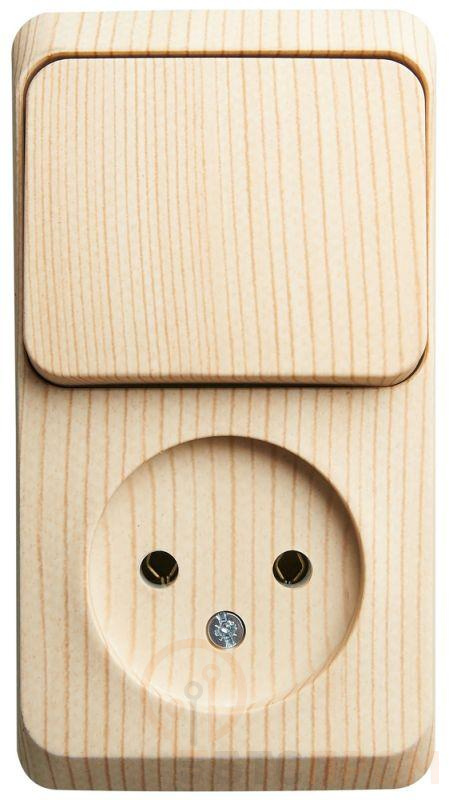 Блок Systeme Electric (ранее Schneider Electric) ЭТЮД (сосна, открытой установки) предназначен для применения в сетях до 250В, состоит из розетки без заземления, без шторок на 16А, и одноклавишного выключателя на 10А. Он удобен в применении и отлично подходит для коридора. Заземление обеспечивает безопасность при косвенном прикосновении. Изделия цвета Сосна обладают уникальным рисунком, напоминающим древесный сруб. Сделано в России.