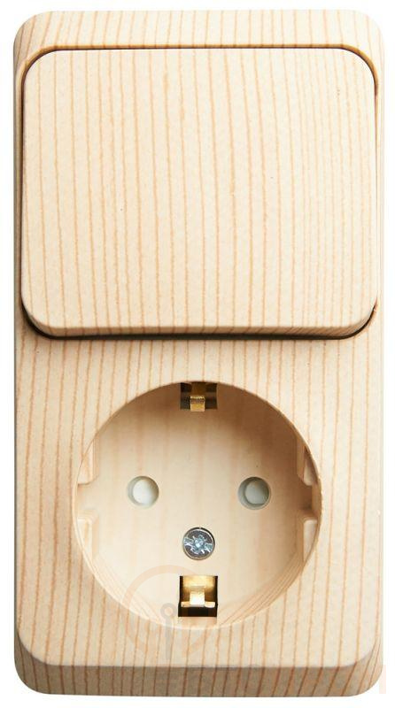 Блок Systeme Electric (ранее Schneider Electric) ЭТЮД (сосна, открытой установки) предназначен для применения в сетях до 250В, состоит из розетки на 16А с заземлением и шторками и одноклавишного выключателя на 10А. Он удобен в применении и отлично подходит для коридора. Заземление обеспечивает безопасность при косвенном прикосновении. Изделия цвета Сосна обладают уникальным рисунком, напоминающим древесный сруб. Сделано в России.