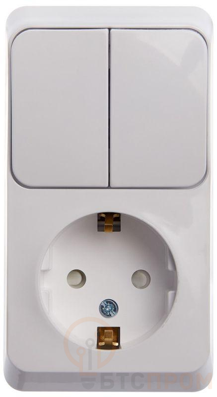 Блок Systeme Electric (ранее Schneider Electric) ЭТЮД (белый, открытой установки) предназначен для применения в сетях до 250В, состоит из розетки на 16А с заземлением и шторками и двухклавишного выключателя на 10А. Две клавиши позволяют управлять двумя источниками света с одной точки. Он удобен в применении и отлично подходит для коридора. Сделано в России.