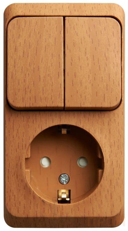 Блок Systeme Electric (ранее Schneider Electric) ЭТЮД (бук, открытой установки) предназначен для применения в сетях до 250В, состоит из розетки на 16А с заземлением и шторками и двухклавишного выключателя на 10А. Две клавиши позволяют управлять двумя источниками света с одной точки. Изделия цвета Бук обладают уникальным рисунком, напоминающим древесный сруб. Он удобен в применении и отлично подходит для коридора.