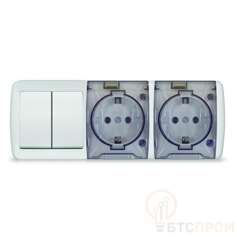 –Блок ОП Клио 2-кл. выкл. 10А + розетка 2-м 16А 250В с заземл. с прозр. крышкой бел. Universal К2240