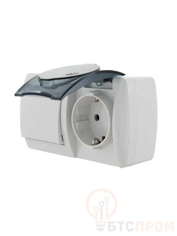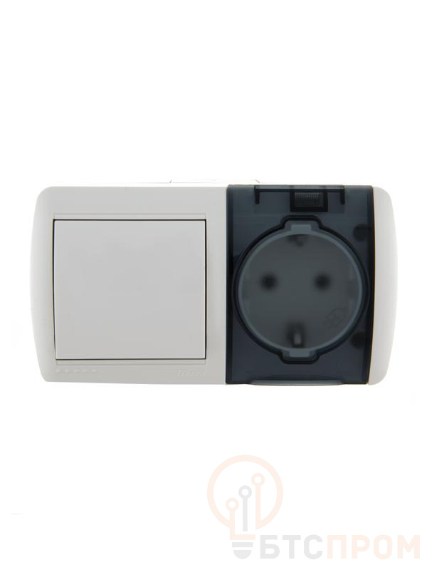 Блок ОП Nata (розетка евростандарт с заземл. с защ. крышкой + 1-кл. выкл.) IP20 бел. LEZARD 710-0200-170