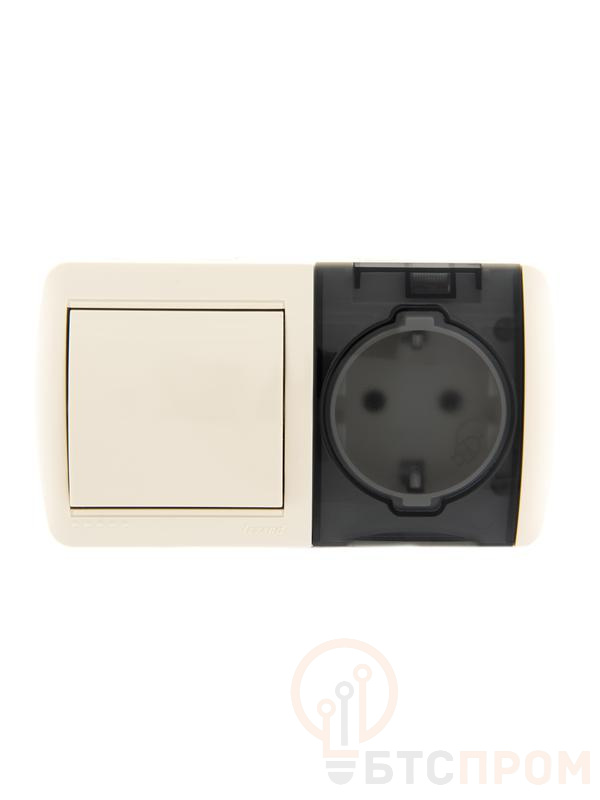 Блок ОП Nata (розетка евростандарт с заземл. с защ. крышкой + 1-кл. выкл.) IP20 крем. LEZARD 710-0300-170