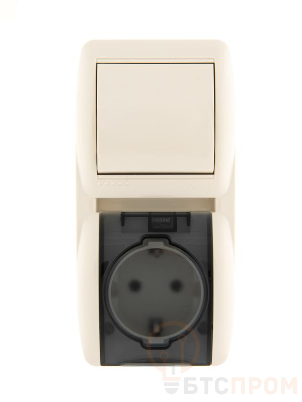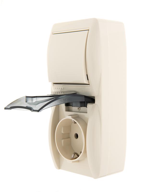 Блок ОП Nata (розетка евростандарт с заземл. с защ. крышкой + 1-кл. выкл.) IP20 вертикал. крем. LEZARD 710-0300-172