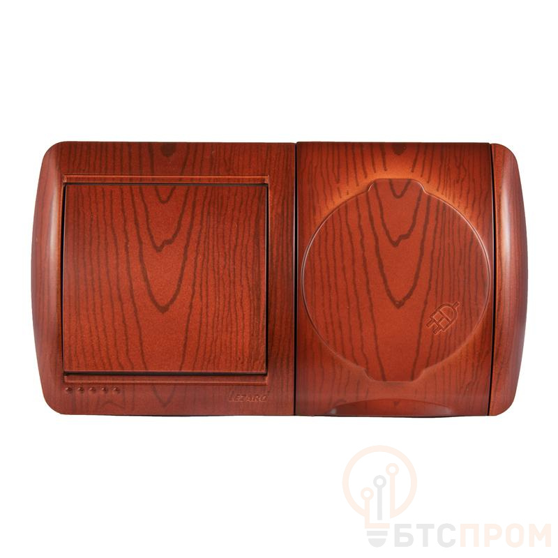 Блок ОП Nata (розетка евростандарт с заземл. с защ. крышкой + 1-кл. выкл.) IP20 вишня LEZARD 710-0600-170