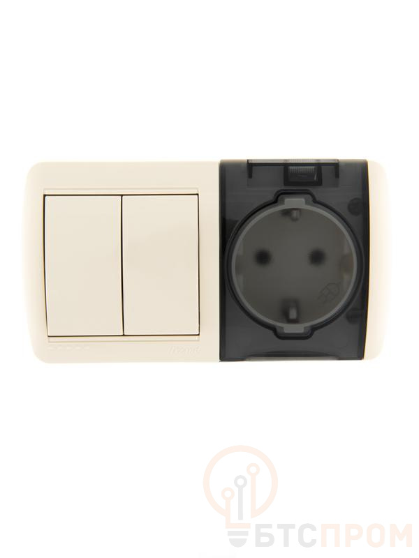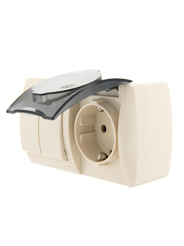 Блок ОП Nata (розетка евростандарт с заземл. с защ. крышкой + 2-кл. выкл.) IP20 крем. LEZARD 710-0300-171