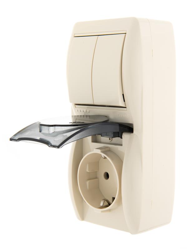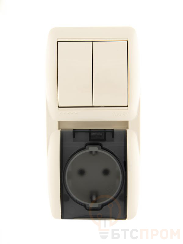 Блок ОП Nata (розетка евростандарт с заземл. с защ. крышкой + 2-кл. выкл.) IP20 вертикал. крем. LEZARD 710-0300-173