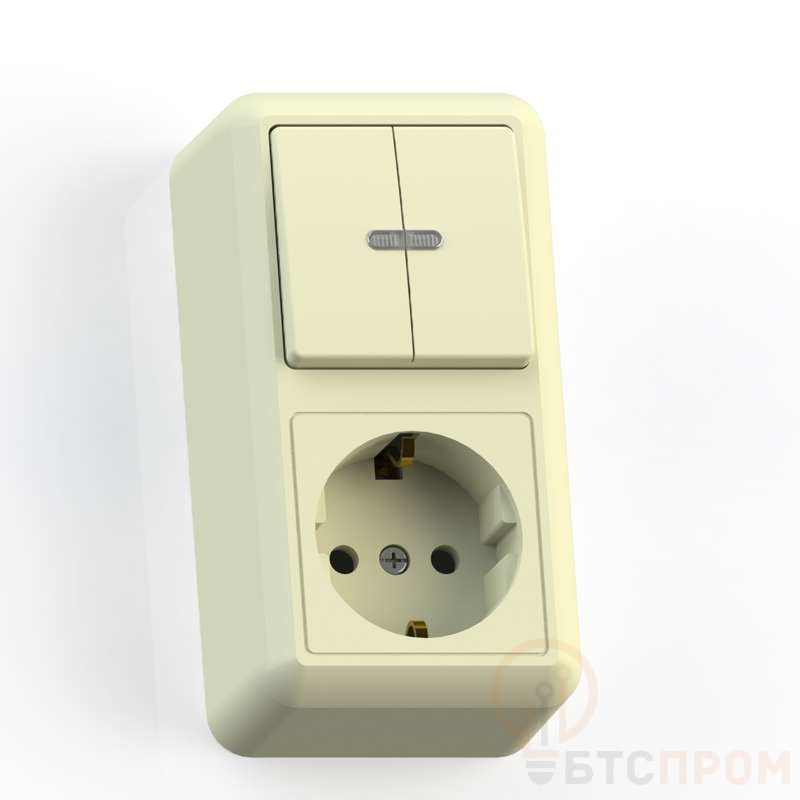 Блок ОП Оптима БКВР-433 (1-м розетка с заземл. + 2-кл. выкл. с подсветкой) сл. кость Кунцево 8089 фото в каталоге от BTSprom.by
