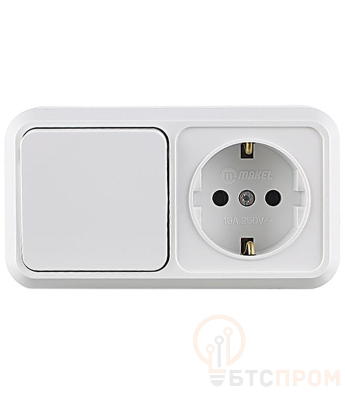 –Блок ОП розетка 1-м IP20 с заземл.+выключатель 1-кл. Makel 451A1
