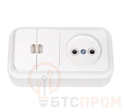 Блок ОП (розетка без заземл. + 2-кл. выкл. с подсветкой) бел. Bylectrica 2В-РЦ-565 фото в каталоге от BTSprom.by