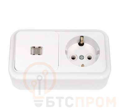 Блок ОП (розетка с заземл. + 1-кл. выкл. с подсветкой) бел. Bylectrica В-РЦ-567 фото в каталоге от BTSprom.by