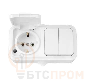 –Блок ОП (розетка с заземл. + 2-кл. выкл.) IP44 бел. Bylectrica 2В-РЦ-659
