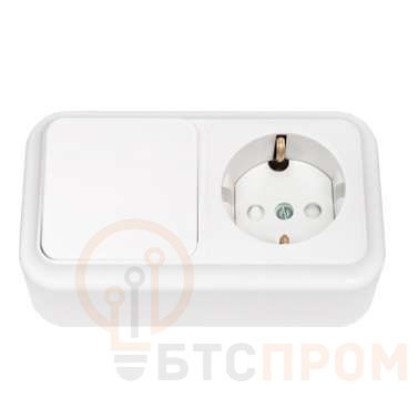 Блок ОП (розетка с заземл. защ. шторки + 1-кл. выкл.) бел. Bylectrica В-РЦ-577 фото в каталоге от BTSprom.by
