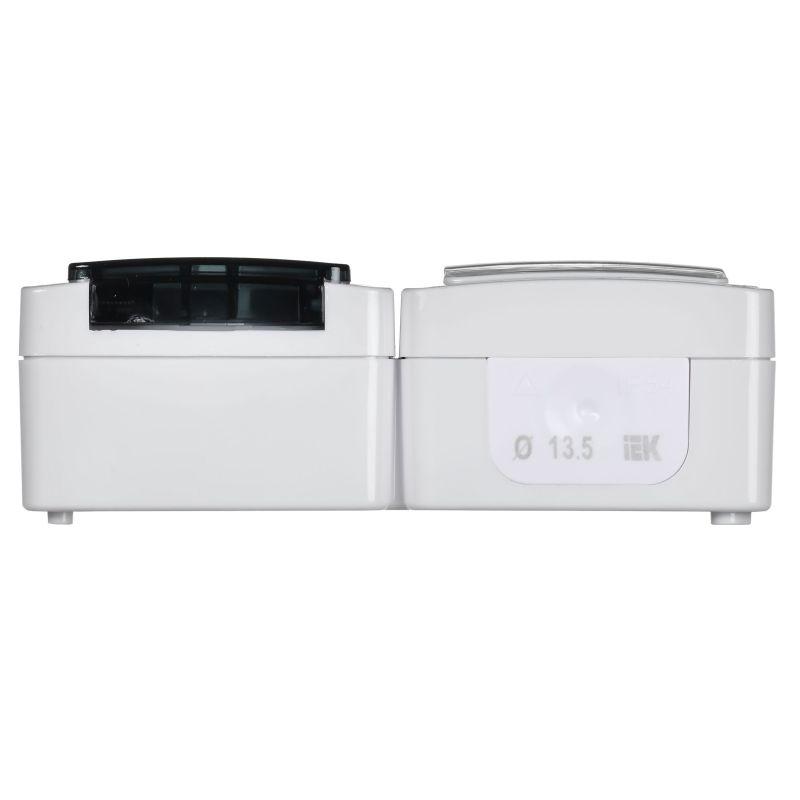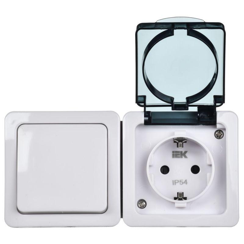 Блок ОП выключатель 1-кл. и розетка с заземл. контактом и крышкой для открытой установки бел. клавиша/дымчатая крышка БГб-22-31-ГПБд IP54 ГЕРМЕС PLUS IEK EBGMP20-K03-31-54-EC