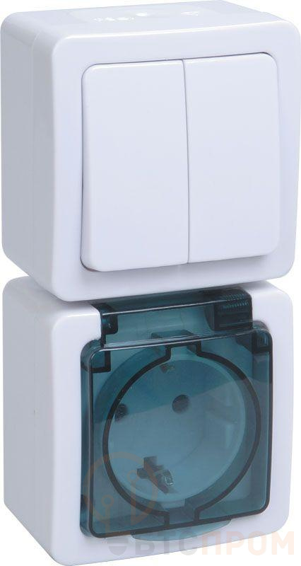 Блок ОП выключатель 2-кл. и розетка с заземл. контактом и крышкой для открытой установки бел. клавиша/дымчатая крышка БВб-22-32-ГПБд IP54 ГЕРМЕС PLUS IEK EBVMP20-K03-32-54-EC