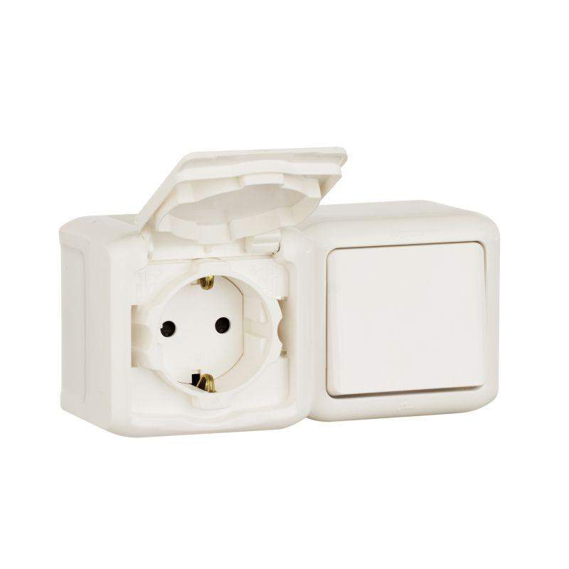 –Блок ОП выключатель + розетка с заземл. защ. шторки IP44 Quteo бел. Leg 782318