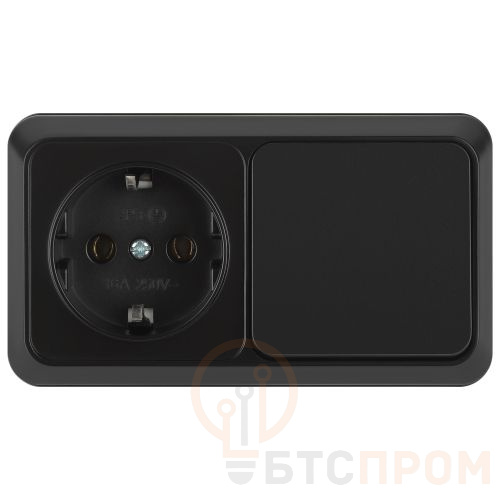 Блок розетка с выключателем 1-м ОП Quadro 2-701-05 10-16-А-250В IP20 горизонт. антрацит Intro Б0069704