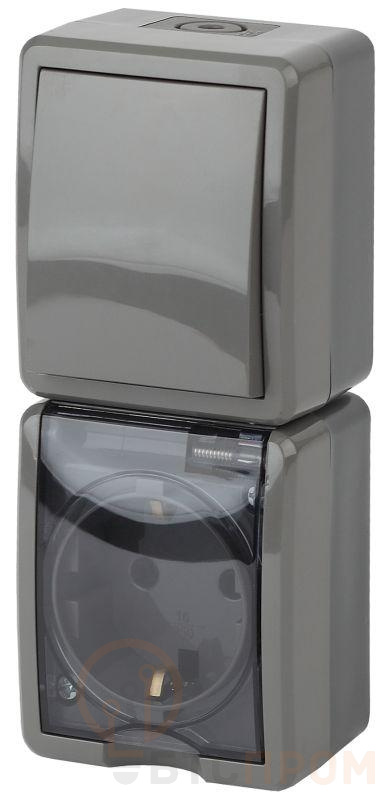 Блок розетка с выключателем влагозащищённый IP54 серии Эра Эксперт открытой установки цвет серый 11-7407-03. Номинальные характеристики 16А 250В. Устройство выполнено из качественного поликарбоната, оснащёно уникальными винтовыми клеммами ЭКСПЕРТ для максимально качественного зажима кабеля в механизме.