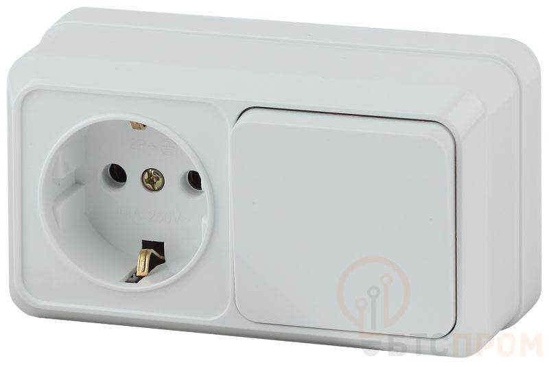 Блок розетка с выключателем Intro Quadro 2-701-01 горизонтальный 10(16)А-250В, IP20, ОУ, белый