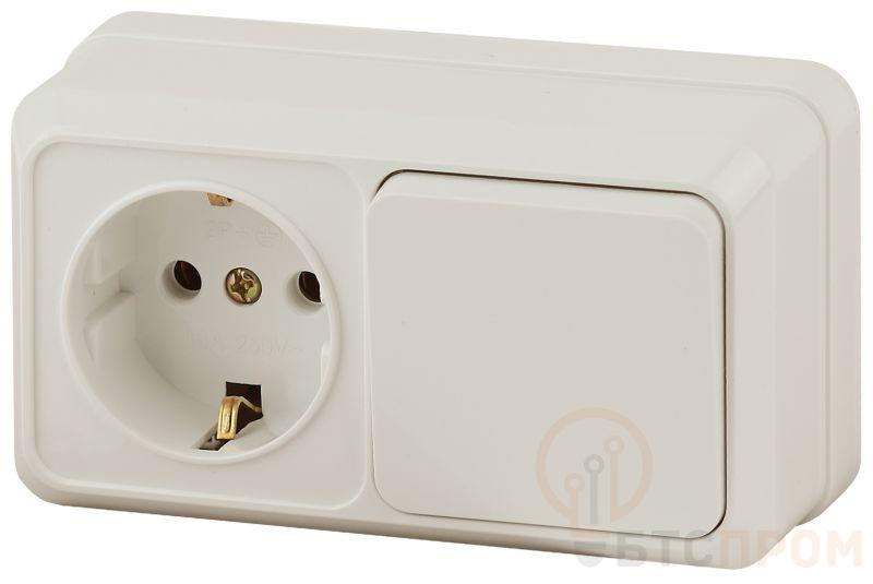 Блок розетка с выключателем горизонтальный серии Intro Quadro открытой установки цвет слоновая кость 2-701-02. Номинальные характеристики 10(16)А-250В. Устройство выполнено из термопласта, керамики, стали и латуни, оснащёно винтовыми зажимами.