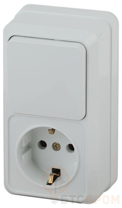 Блок розетка с выключателем Intro Quadro 2-705-01 вертикальный 10(16)А-250В, IP20, ОУ, белый