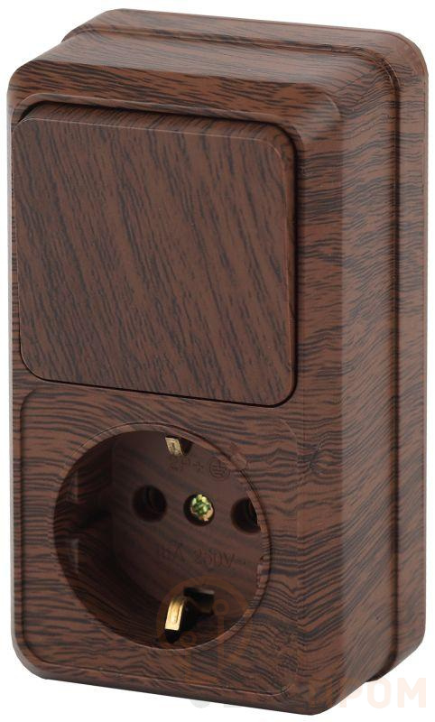 Блок ОП Quadro 2-705-10 (1-м розетка + 1-кл. выкл.) 10(16)А IP20 250В вертикал. венге Intro Б0053886