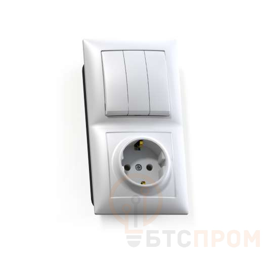 Блок СП БКВР-413 Селена (3-кл. выкл. + розетка с заземл.) бел. Кунцево 8209 фото в каталоге от BTSprom.by
