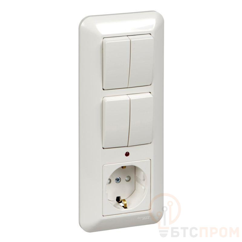 Блок комбинированный Systeme Electric (ранее Schneider Electric) BLANCA (скрытой установки, белый) предназначен для сетей до 250 В, состоит из розетки на 16 А со шторками и с заземлением и двух двухклавишных выключателей, оба на 6 А. - Заземляющий контакт обеспечивает дополнительную защиту от удара электрическим током. При наличии заземления электрический потенциал уходит в землю, защищая человека. - Двухклавишный выключатель позволяет управлять двумя источниками света из одной точки. - Блок удобен в применении и отлично подходит для коридора. - Оптовая упаковка, сделано в России.