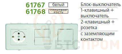 Блок СП CARIVA (1кл + 2кл + роз. с заземл.) бел. Leg 773644 фото в каталоге от BTSprom.by