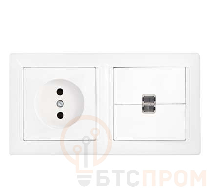 –Блок СП (розетка без заземл. + 2-кл. выкл. с подсветкой) бел. Bylectrica 2В-РЦ-699