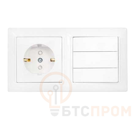 Блок СП (розетка с заземл. защ. шторки + 3-кл. выкл.) бел. Bylectrica 3В-РЦ-717 фото в каталоге от BTSprom.by