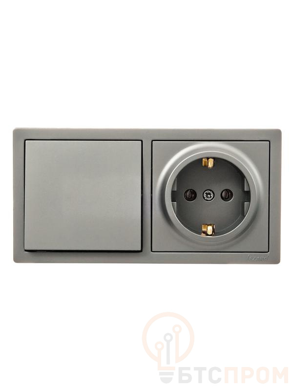 Блок выключатель 1-клав. и розетка 1-местн с заземл. LETO платина горизонталь LEZARD 752-3500-170BAP