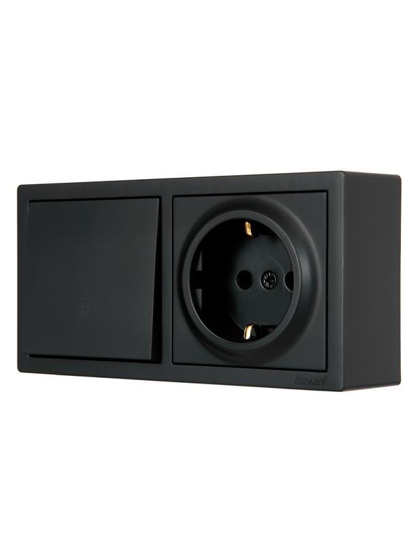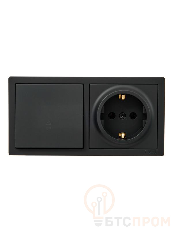 Блок выключатель 1-клав. проходной и розетка 1-местн с заземл. LETO черн. бархат горизонталь LEZARD 752-4200-170BVP